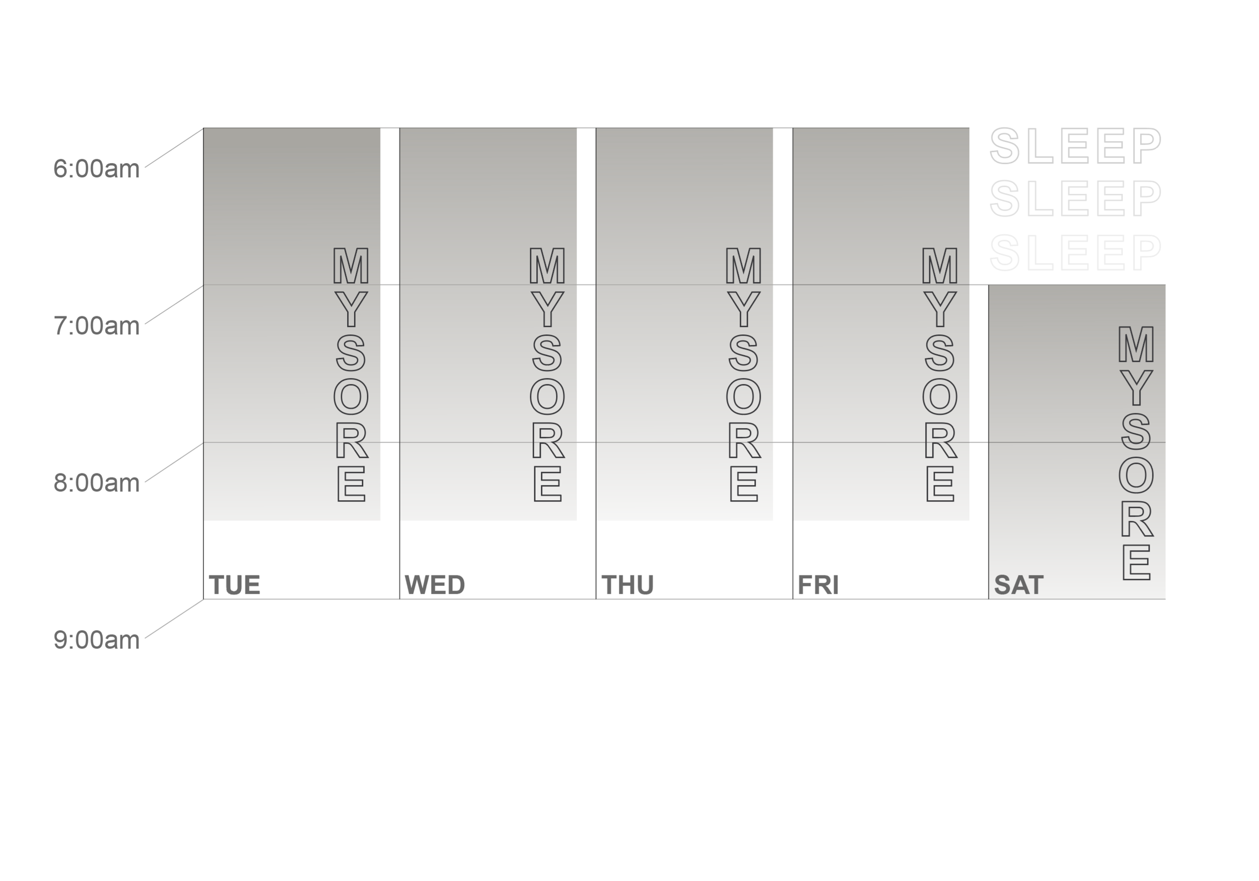When our program is in session, classes run Tuesday through Saturday.